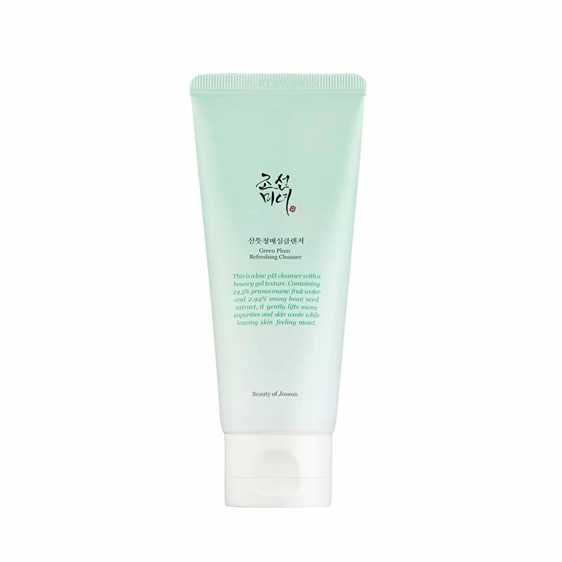 Beauty of Joseon: Green Plum Refreshing Cleanser is a slightly acidic cleanser that helps to cleanse the face without damaging the natural skin barrier. It does not dry out the skin and provides a moist feeling even after cleansing. Plum water 24% soften old dead skin cells and moisturize the skin. Mung beans are effective for exfoliating, so they were made into a face cleanser by grinding them together with red beans, other beans, and rice bran in the Joseon Dynasty. In addition, the saponin contained in mung bean helps to keep the skin moist for a long time by promoting the creation of moisture.