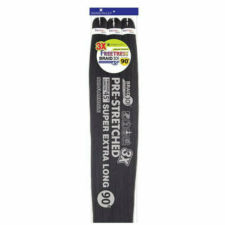 FreeTress: 3x Braid 301 90″ is pre-stretched braiding hair that can be used to create longer braids, twists, locs without the hassle of adding hair. It saves you time and effort! It is a full 90″ from tip to tip. Create longer protective styles easier and faster!