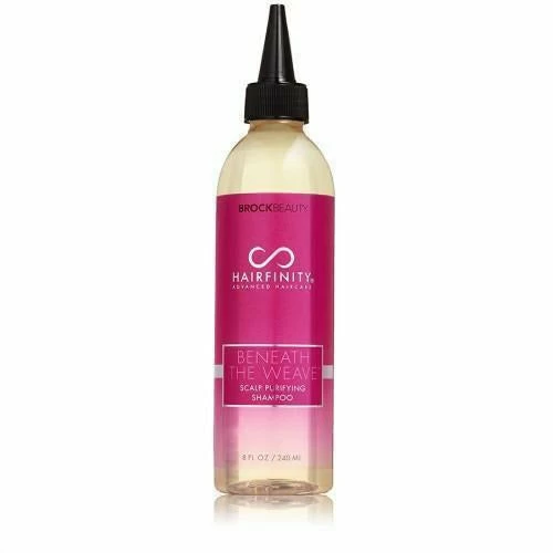 HAIRFINITY Scalp Purifying Shampoo A light, airy foam shampoo formulated to calm, cleanse and detox natural hair bound in weaves or protective styles. Clears irritants and frees follicles of buildup without stripping hair and scalp of its natural moisture. Soothe your scalp and hair with the scents of peppermint and tea tree oils.