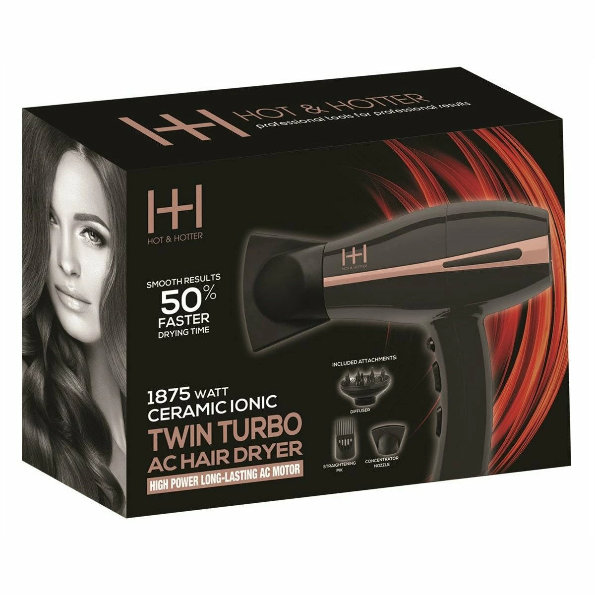 Annie Hot & Hotter 1875 Watt Ceramic Ionic Twin Turbo High Power AC Motor Hair Dryer Faster Drying Time Smooth Results