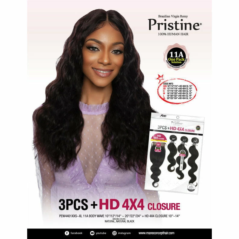 Pristine 11A 100% Unprocessed Human Hair 3 Bundle + Closure Pack